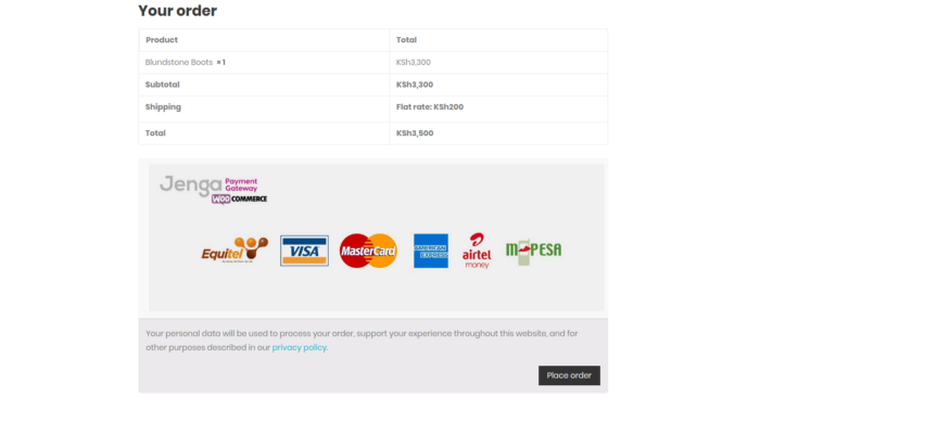 Finserve recently published Jenga Payment Gateway WooCommerce plugin to help WordPress merchants to integrate easily to their checkout platform. This plugin basically allows merchants to accept cards (Master Card, Amex and Visa Card), mobile money(Equitel, Airtel, Mpesa) and bank account payments from their customers in a simple and convenient way.