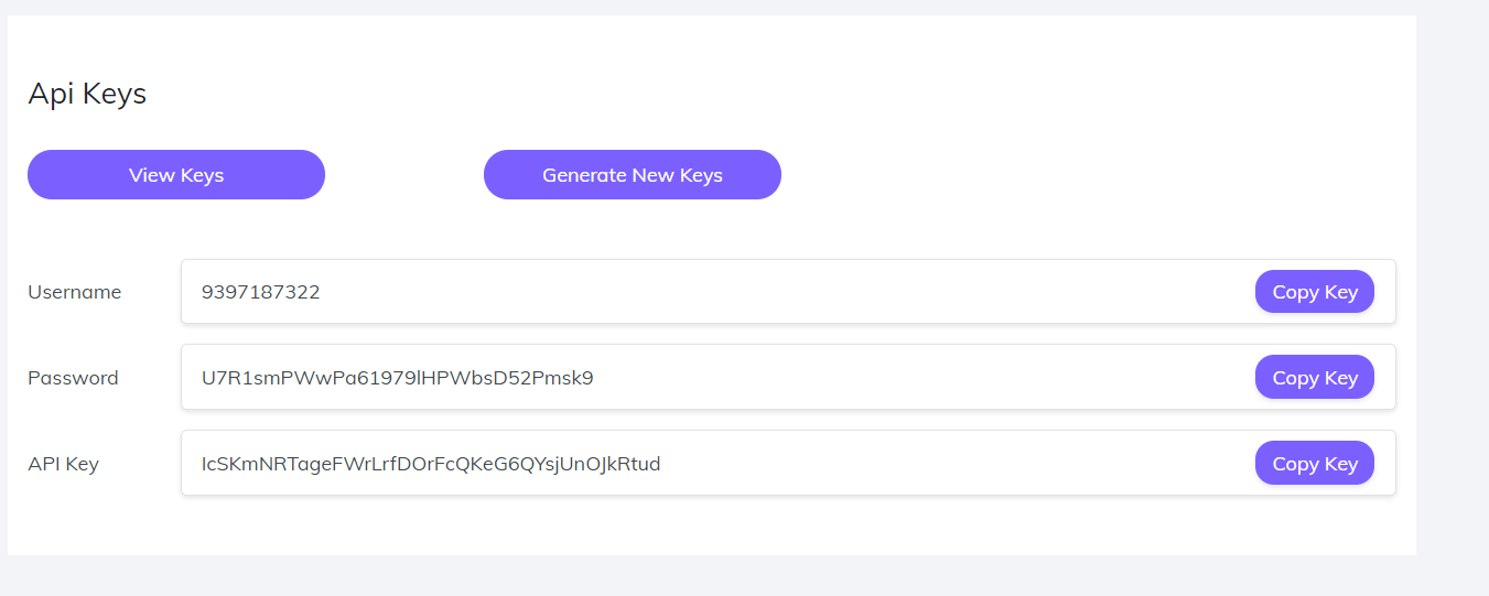 Click on view keys and copy the username, password and API Key and save them on your desired location. We will use this later to set up the plugin.