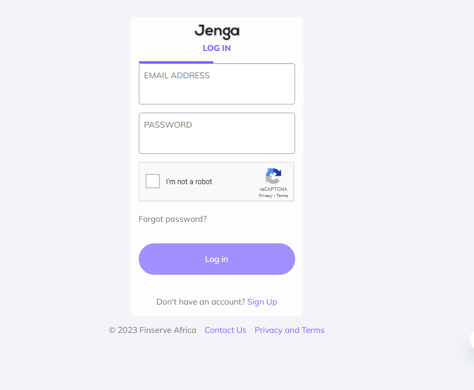 The sign up process is pretty easy and straightforward. Just follow this link Jenga HQ Portal and click on the sign up label.