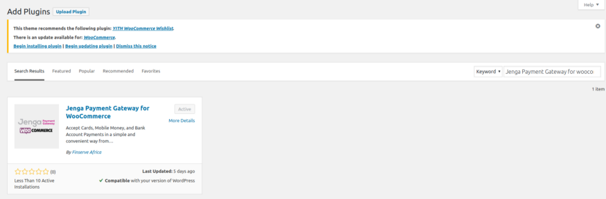 Type “Jenga Payment Gateway for WooCommerce” in the search box.